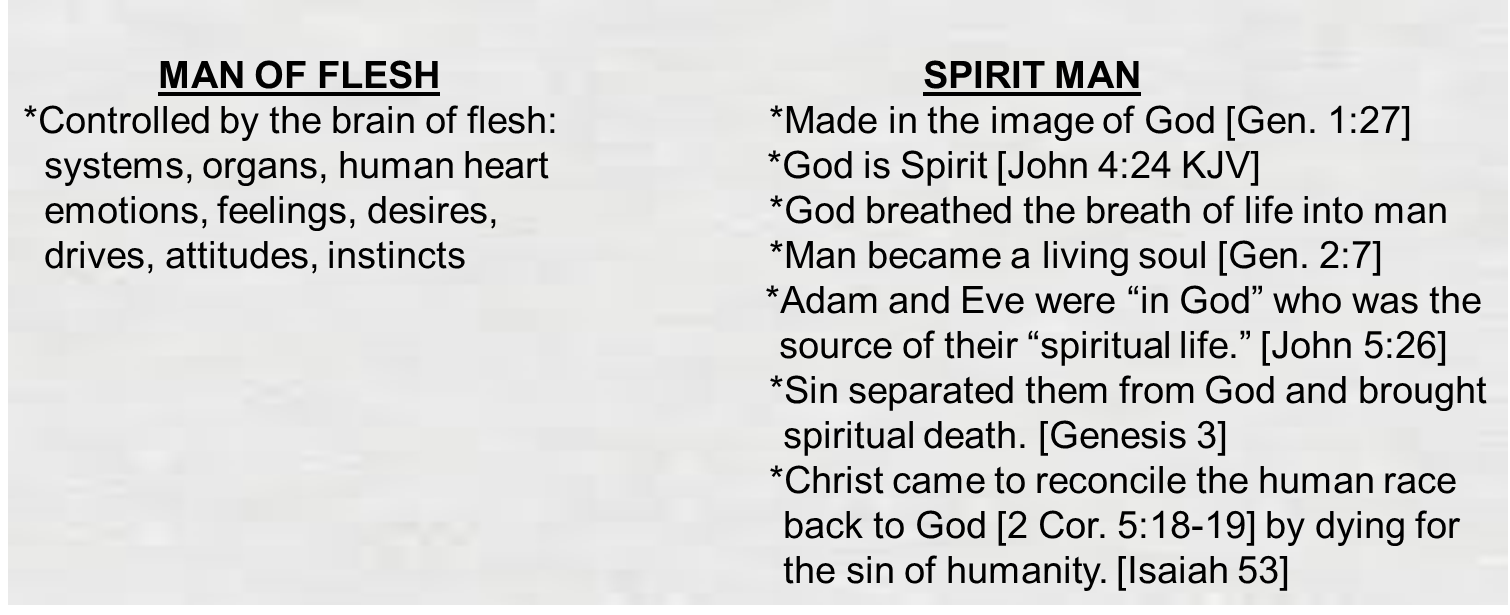 HUMANS' TWO NATURES: A SPIRIT MAN MADE IN THE IMAGE OF GOD AND A MAN OF FLESH MADE FROM THE DUST